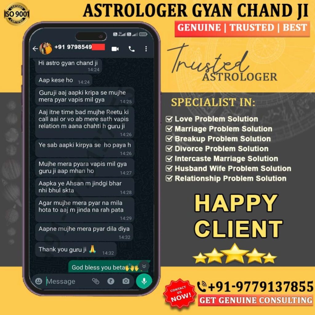 Do not worry what will happen next in your love marriage, consuThere are many people who need to get love back; using astrology surely helps a person to get what they actually want. Consult With Astrologer Gyan Chand Ji. lt our famous astrologer and see how your love marriage becomes possible easily with Gyan Chand Ji.